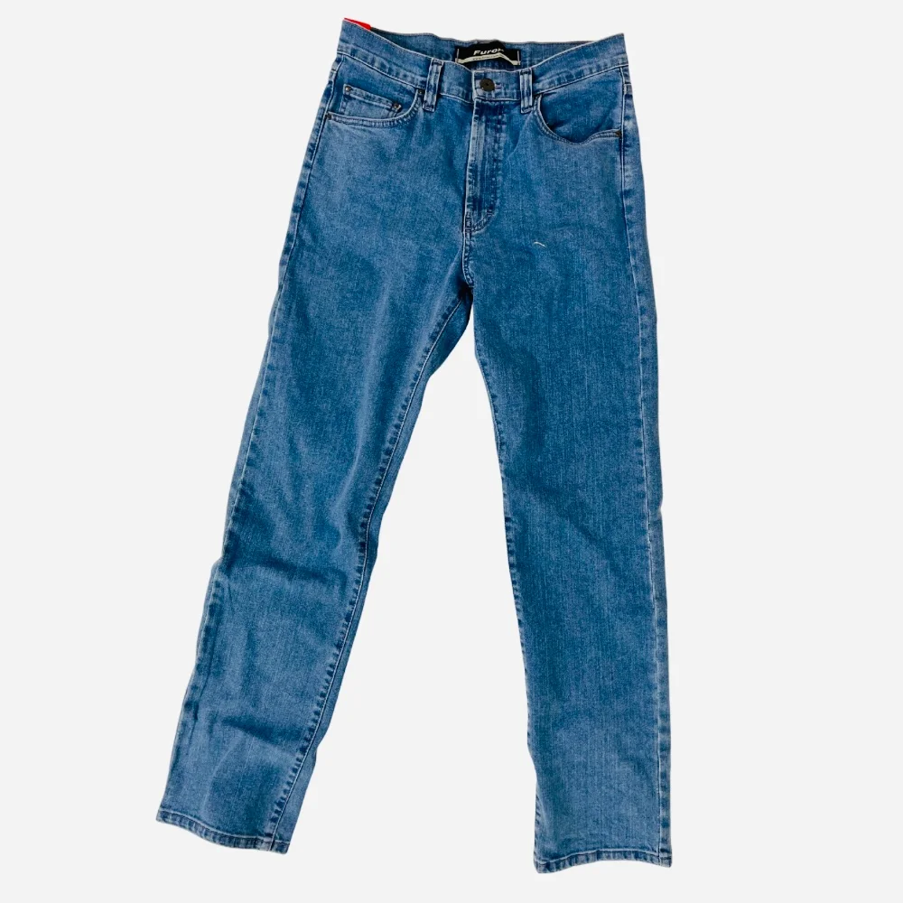 Pantalón de mezclilla para Caballero marca Furor, en corte recto. Confeccionado en su mayoría de algodón, es una prenda de calidad, ideal para su uso diario