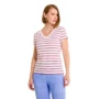 Playera para Dama marca Levi’s Red Tab, en color blanco con franjas horizontales en tonos vino. Elaborado en mayoría de algodón es una prenda cómoda y de calidad, ideal para su uso diario